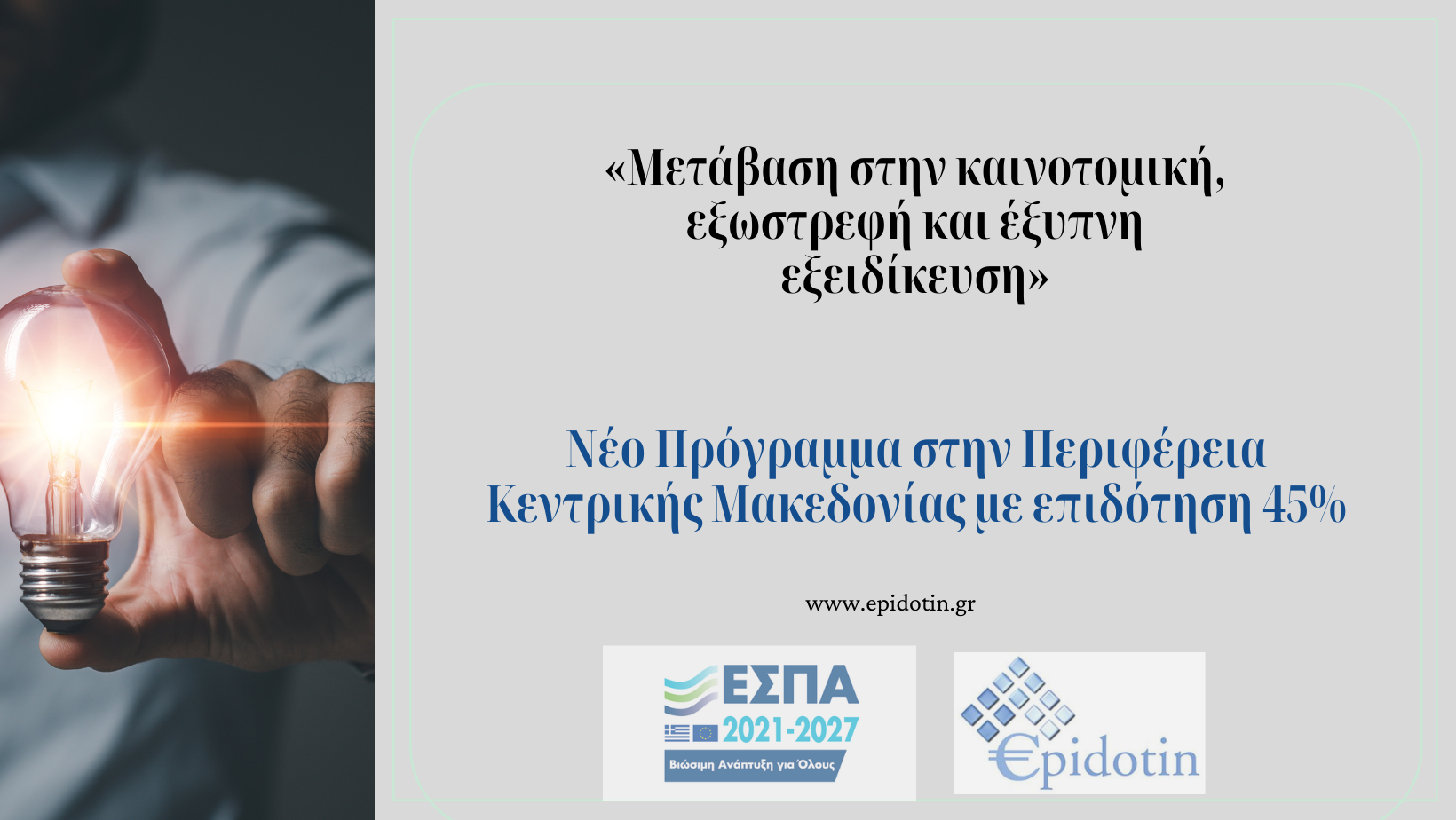 επιχειρήσεων της Περιφέρειας Κεντρικής Μακεδονίας, για την ανάπτυξη και διάχυση νέων τεχνολογιών, τον τεχνολογικό τους μετασχηματισμό, την μεγέθυνση (scale up), την εξωστρέφεια (έμφαση τόσο στις παγκόσμιες αλυσίδες αξίες – GVC, όσο και στην προώθηση προϊόντων υψηλής τεχνολογικής αξίας) και την προώθηση της διττής μετάβασης, δηλαδή του ψηφιακού μετασχηματισμού και της κυκλικής οικονομίας.